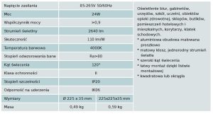 Sprawdzi się jako oświetlenie sklepów, biur, urzędów, obiektów opieki zdrowotnej, korytarzy, klatek schodowych, pomieszczeń hotelowych i mieszkalnych. Przeznaczona do montażu natynkowego. Oprawy do montażu wpuszczanego na innych naszych aukcjach.