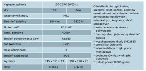 - Wysoki stopień odwzorowania braw, neutralna temperatura barwowa światła i korzystna proporcja jakości do ceny dają oprawie możliwość wszechstronnego zastosowania.