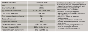 - Wyposażona również w przycisk testu ręcznego. Energooszczędne, niewymienne źródło światła LED i akumulator o pojemności 1800 mAh pozwalają na 3 godzinną pracę w trybie awaryjnym.