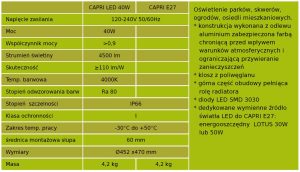 Zastosowanie: oświetlenie terenu, parków, placów zabaw i terenów osiedli, parkingów, alei, skwerów