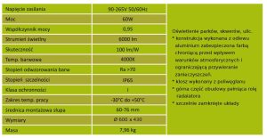 - Klosz wykonany z poliwęglanu a górna część obudowy pełni rolę radiatora.